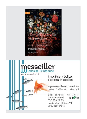 c’est chez Messeiller ! impression offset et numérique rapide • efficace • attrayant Editeur du Bulcom Boostez votre communication! 032 756 97 93 Route des Falaises 94 2000 Neuchâtel