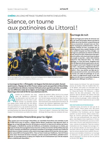 Des retombées financières pour la région « Pour quatre jours de tournage à Neuchâtel, les retombées financières sont estimées à près de 117’000 francs pour le canton », indique Adrian Blaser, producteur chez Beauvoir films. Le budget de ce long-métrage d’environ 90 minutes se monte à un total de 2,5 millions de francs. « L’Échappée » a bénéficié du soutien de Cinéforom, la Fondation romande pour le cinéma, qui regroupe les fonds d’encouragement de la branche. Le Ville et le Canton de Neuchâtel ainsi que la Loterie romande neuchâteloise contribuent ensemble à l’enveloppe annuelle que Cinéforom investit dans le cinéma romand. Le film, dont le tournage a démarré à fin janvier, est une coproduction suisse (90%) et française (10%). « Pour un franc investi par Cinéforom, c’est 3,10 francs en retour dans l’économie de Suisse romande », précise Jacques-André Maire, président de Cinéforom. Ce tournage donne un aperçu de l’impact de cet investissement qui crée des emplois et de la visibilité pour Neuchâtel.