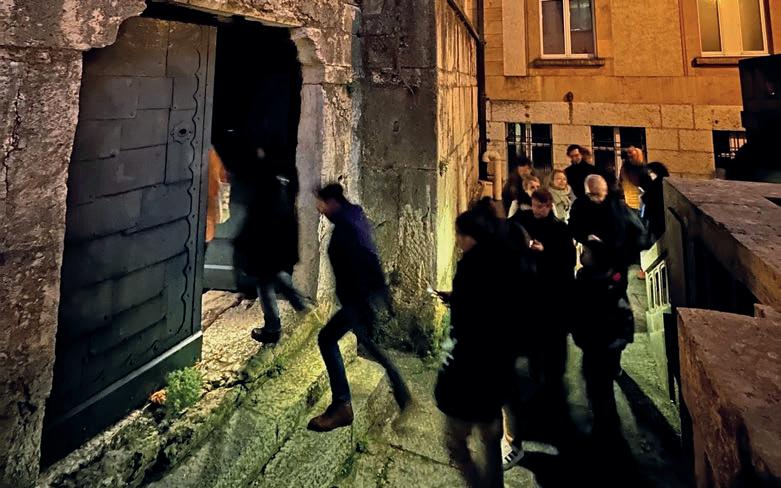 Il faisait bien froid, ce dimanche de décembre, mais le groupe qui patientait au pied de la Tour des prisons n’aurait manqué pour rien au monde ce rendez-vous de fin de journée : la première activité de la Guilde de la Tour du fantastique. La jeune association, qui compte déjà plus de 160 membres, proposait de découvrir le projet, d’échanger avec John Howe et de grimper au sommet de la tour médiévale, avant un apéritif de réseautage. Un programme qui a réuni pas moins de 70 personnes, de la région mais aussi de toute la Suisse romande. « Nous sommes ravis de vous accueillir en si grand nombre et de voir l’immense intérêt que suscite déjà la Tour du fantastique », se réjouissait la présidente de la Guilde, Laurie Crozet, en dressant l’historique de ce projet, porté conjointement par la Ville, le Canton, le NIFFF et John Howe. Actuellement en plein chantier, les anciennes prisons de l’Etat seront en effet trans-