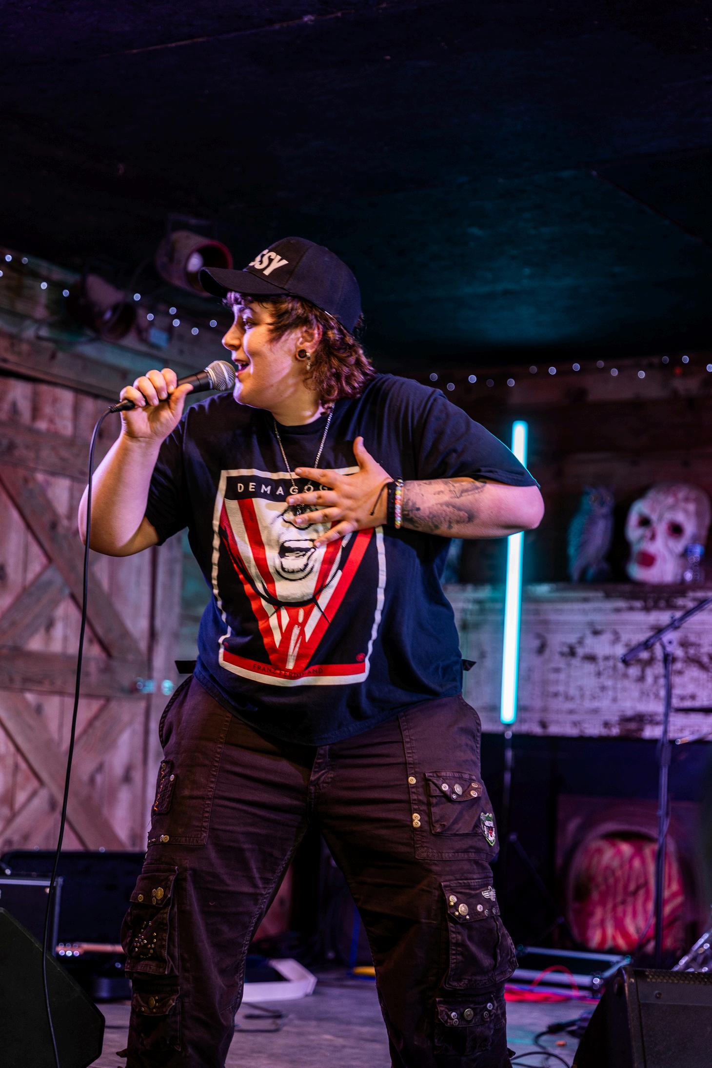 Jay, nodding: “Everything, from images interacting with people at your shows and all that stuff. Once I had all of that I was like okay I'm ready now. So I sent in an audition tape but they didn't get back to me at all. [A quiet beat, then:] They didn't get back to me and that was like Spring 2023. Then that summer somebody had texted me on Instagram, like “hey I need to talk to you I'm trying to get you involved with something and I think you're really good so what's your email” So I gave him my email *laughs*