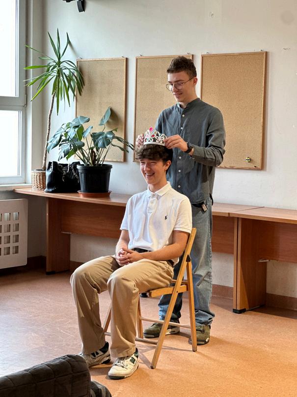 Już 3 tygodnie później- 6 11 2024 roku odbyło się oficjalne przekazanie korony z rąk byłego samorządu- „VILOKRACJI”, na głowę Maćka. To wydarzenie, w którym uczestniczył Pan Dyrektor Tomasz Ogrodnik oraz opiekunowie obu sztabów: Pan Andrzej Chorab („VILIFE”) oraz Pan Paweł Sadłoń („VILOKRACJA”), uznaje się za symboliczny oraz formalny moment objęcia władzy. Zaczęliśmy działać. Na następnej stronie podsumowanie roku!