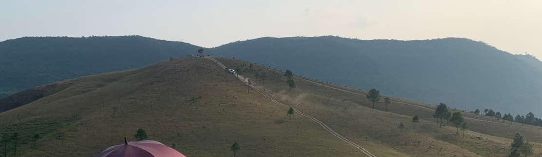 Bao mồ hôi, nước mắt, khổ đau, buồn bã, vật vã v.vv trên con đường đồi dốc ngược, bụi mù ,xa xôi , mông lung, hoang mang v.vv.. bỗng chốc tan biến khi trước mắt thấy thấp thoáng nhấp nhô lều trại của mình ở thung lũng bao la mênh mông một màu xanh xanh chấm thêm nhiều vàng trong nắng chiều ấm áp. Đứng ở độ cao trên 400m chưa tới 500m chưa rõ cụ thể con số, cảm nhận không khí trong veo nhẹ bẫng, được ôm trọn bởi khoảng không gian bát ngát không giới hạn nhưng vẫn trong tầm mắt của mình, biết chắc ở đây sẽ tìm thấy “thơ mộng ở nơi xa” mà bọn mình vẫn đang mong đợi.
