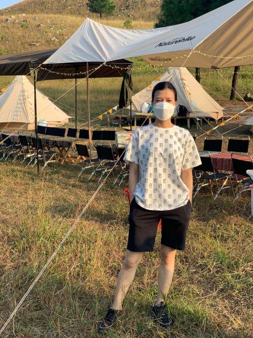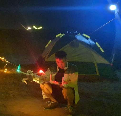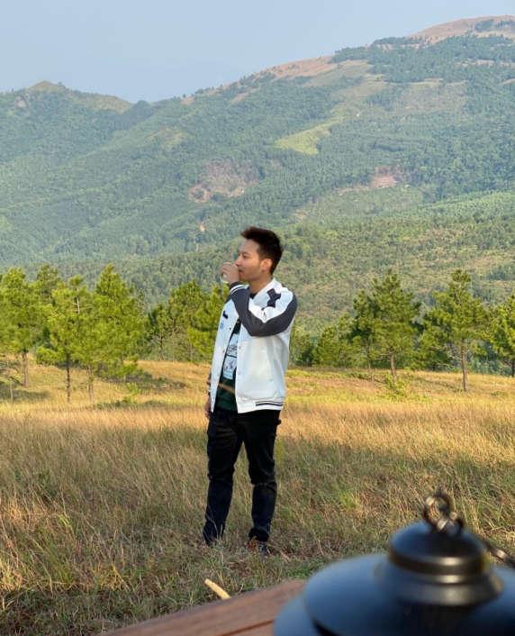 (Trông anh này thôi mà đêm qua anh bị sương trong lều rơi vào mặt)