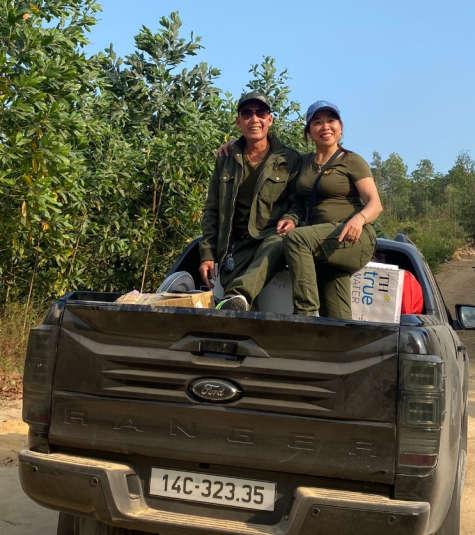 Vượt trước rất nhiều xe máy, xe đạp cùng các xe khác; đi qua mấy chục đường vòng và vô số đèn xanh đèn đỏ; băng ngang qua 3 con sông to bằng cầu Bính, cầu Giá và cầu Đá Bạc, đoàn xe OHF đã đi hết Hải Phòng, đến với chân núi Ba Tầng của thị xã Uông Bí tỉnh Quảng Ninh sau đúng một tiếng đồng hồ. Tới nơi tất bật trung chuyển đồ đạc, ưu tiên đưa đội Măng Non + Tre Già và đội Hậu Cần tham gia chơi trò 20 phút “xóc tung lật mạnh” trên xe bán tải. Còn lại một đoàn Quân Xung Phong nhận nhiệm vụ thăm dò tìm hiểu địa chất đồi núi và tính giờ chân đi, một tiếng sau cả đoàn cũng đã tập hợp được ở nơi cắm trại Đồi Phượng Hoàng. (Nụ cười vui tươi trước khi tham gia game xe leo đồi của đội Hậu Cần…) ( …Và biểu cảm sau khi được“xóc tung lật