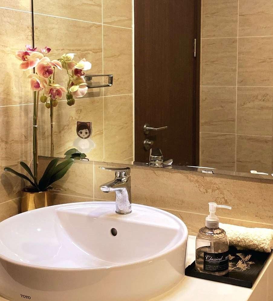 Nhàvệsinh chungngoài phòngkhách khôngkém phầnsang trọng,đónmời bạnhòacùng dòngnướcmát, gộtrửahếtmọi muộnphiền.