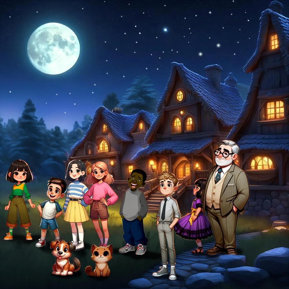 Under a starlit sky, the children reflect on the story of creation. "The world is amazing!" exclaims Emma. "A beautiful gift for all of us," whispers Mr. Johnson.