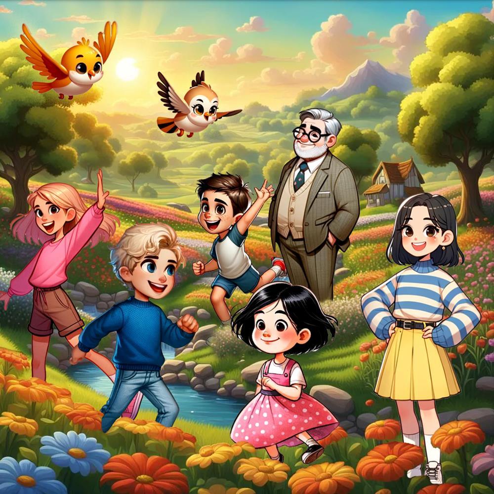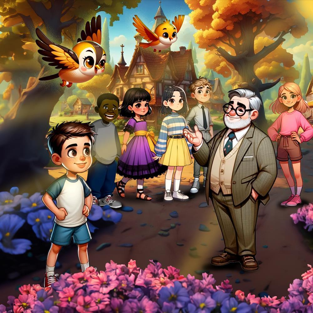 In the heart of Brite Star, the children gather under the golden morning sun.