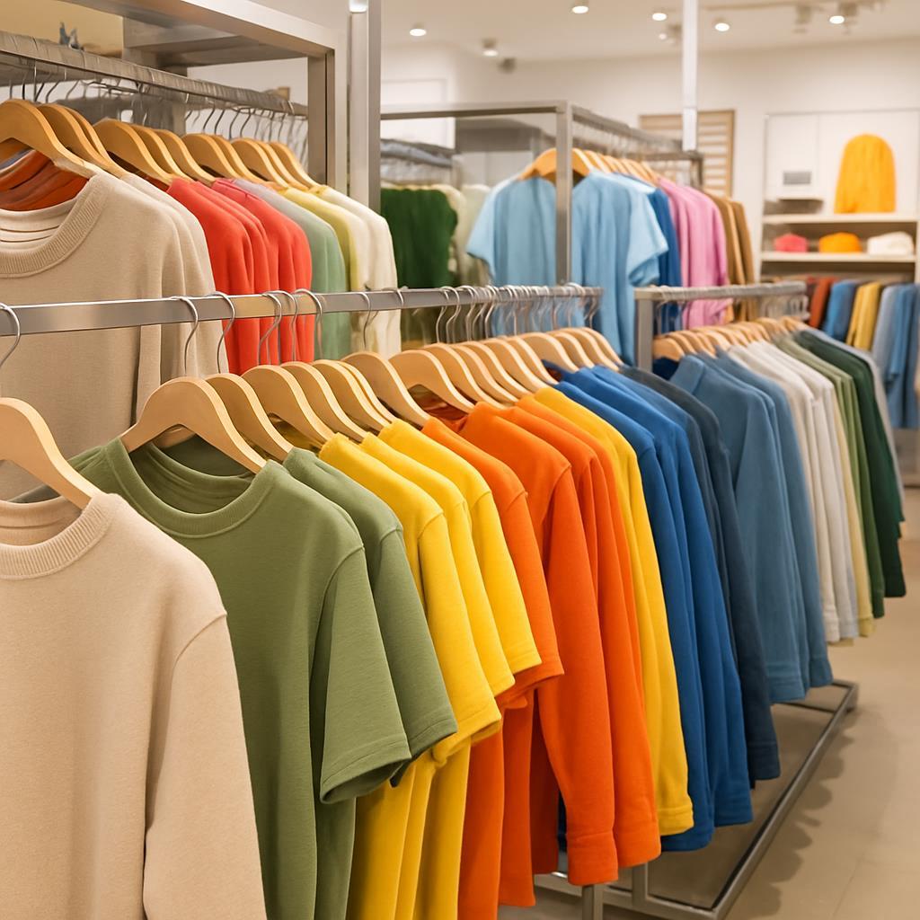 Can you look and learn and tell me the name of the place? You’re right — it’s a CLOTHING STORE! Clothing stores have shirts, pants, dresses, and more. You can try things on and pick your style!
