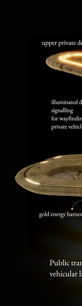 Space for one private vehicle per landing pad for parking; illuminated petals