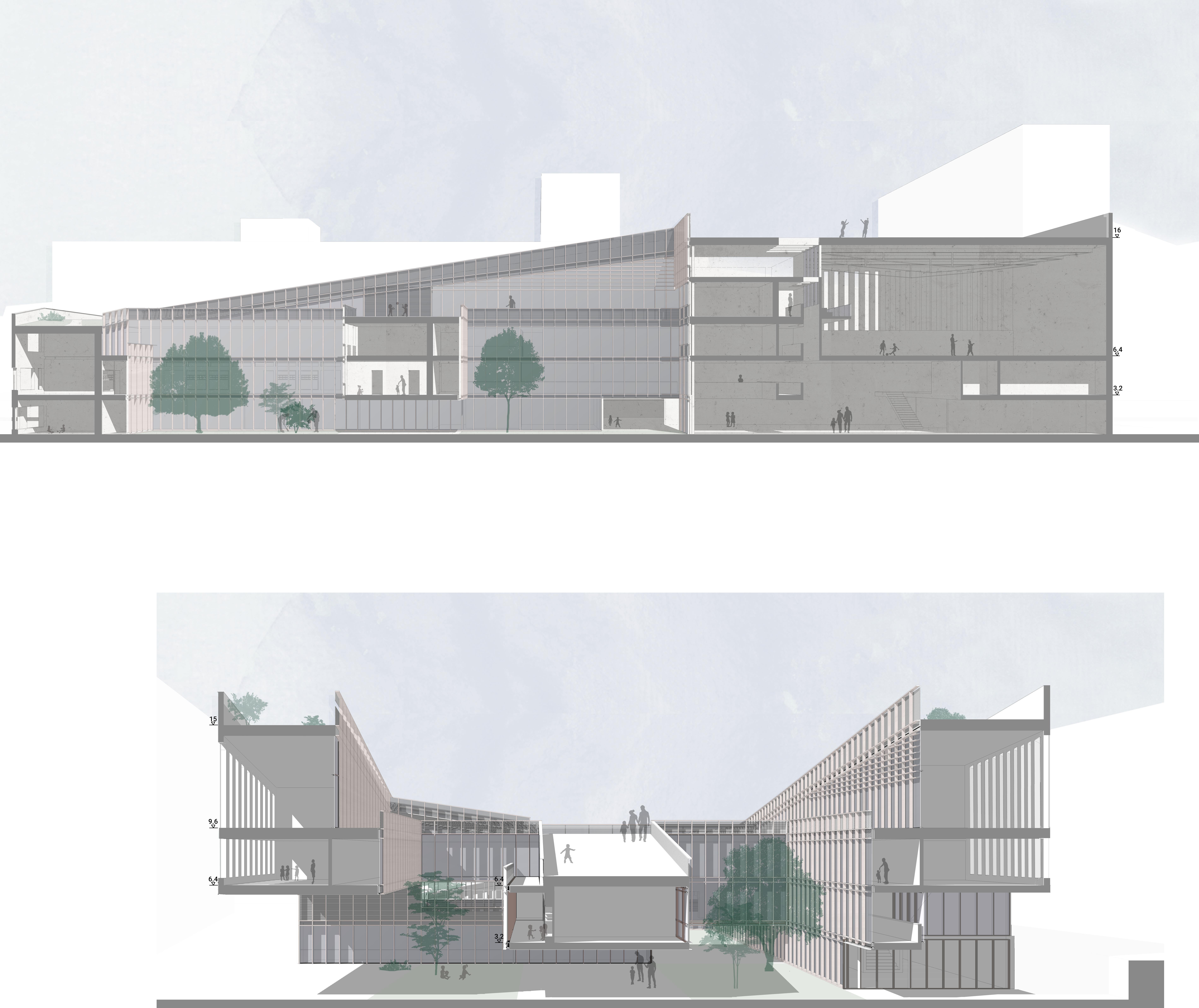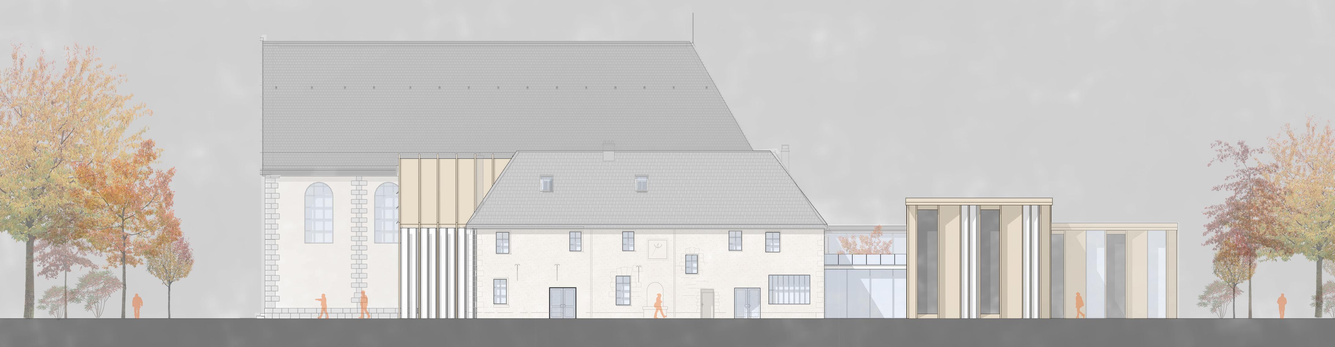 In the geographic center of the city of Coulommiers lies the ruins of a 17th century castle, which is now home to a park. The only remai ning building from this time period is a convent, now home to the municipal museum. This museum suffers from a poorly arranged collec tion and lack of exposition spaces. The main goal of this project is to provide additional space and make the overall area more attractive to visitors and the local population.