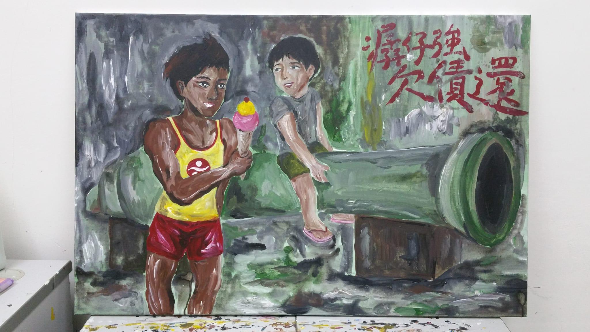 Kowloon Walled City Series (Version 8) – Homecoming Dad from the Ancient Cannon (Size: 36” x 24”)