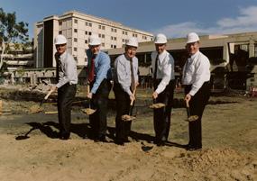 Digging in for the 2003 West Tower groundbreaking are William Averill, MD, chief of medical staff; Thomas Simko, MD, president of the Health Care Foundation board of directors; George W. Graham; Craig Leach; and William Collier, Jr., chairman of the board of trustees.