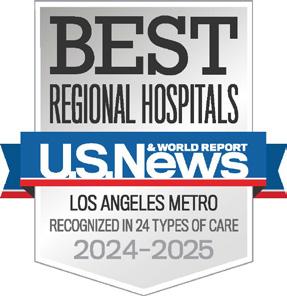Prestigious awards are earned, and Torrance Memorial Medical Center has again been recognized as a Best Hospital for 2024–2025 for the 13th year by U.S. News & World Report. This year our rankings remain the 9th highest ranking hospital for overall hospital quality in California and 4th in the Los Angeles and Orange County regions. This year we are nationally ranked in orthopedics and OB-GYN and ranked high-performing in six specialties. We also rank high-performing in 16 of 20 “conditions and procedures” areas. Ranking in the top 3% shows we are delivering on our vision to provide patient-centered care with the highest level of quality and service to the community. It means we are honoring our promise to deliver our core values of Service, Excellence, Knowledge, Stability and Community.
