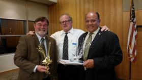 Bottom: Lomita Council Member and SBCCOG 2015-2016 Board Chair Jim Gazely (center) presents former Torrance City Council Member Kurt Weideman (left) with recognition for Torrance’s Gold Tier level and former Gardena Council Member Dan Medina, (right) for Gardena’s Platinum Tier level achievement.