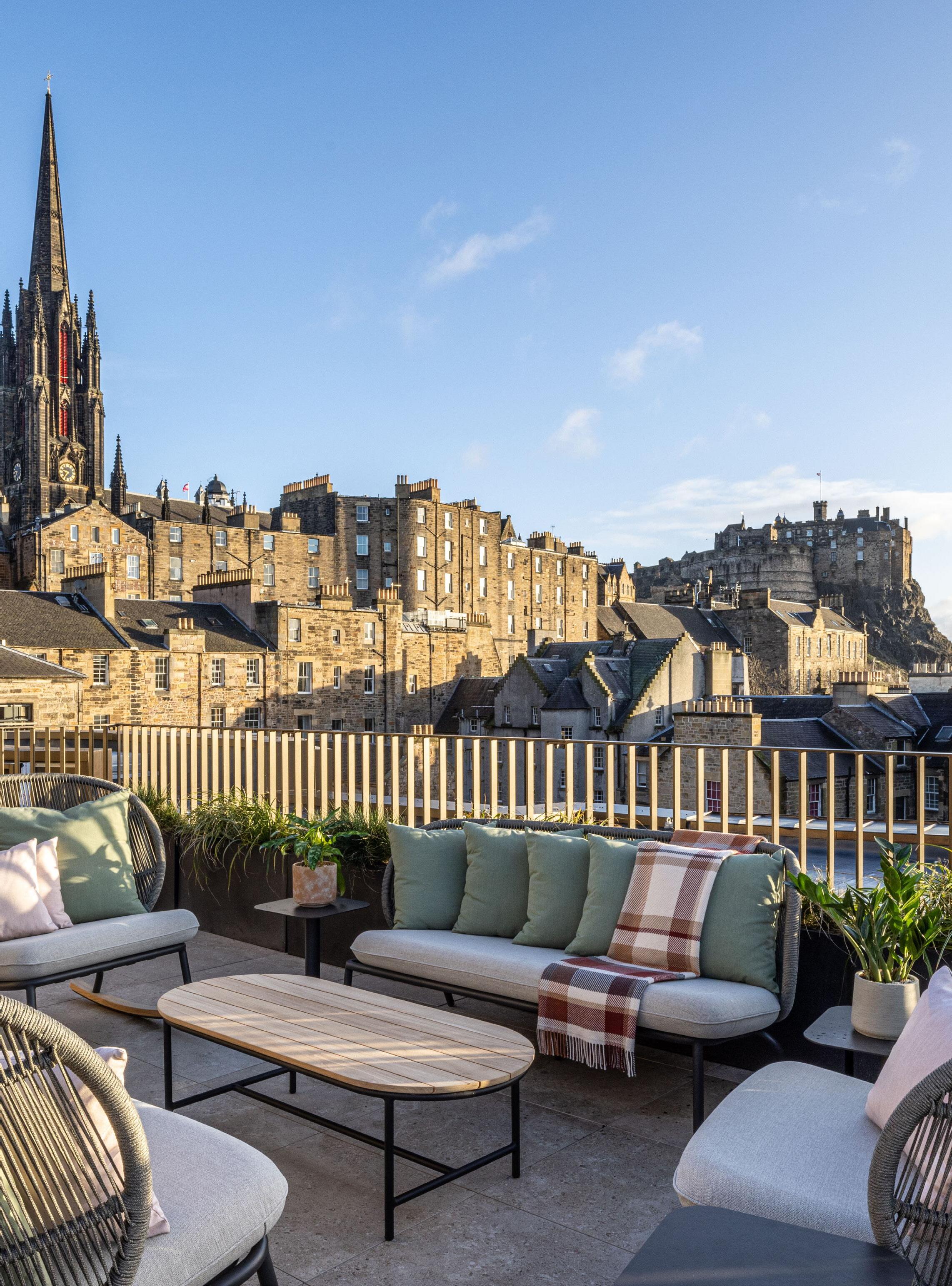The rooftop bar, offering panoramic views of Edinburgh’s skyline, is transformed into a stylish oasis with our Kodo, Wicked and Loop collection. From light loungers to cozy seating pods, guests can unwind amidst a stunning backdrop.