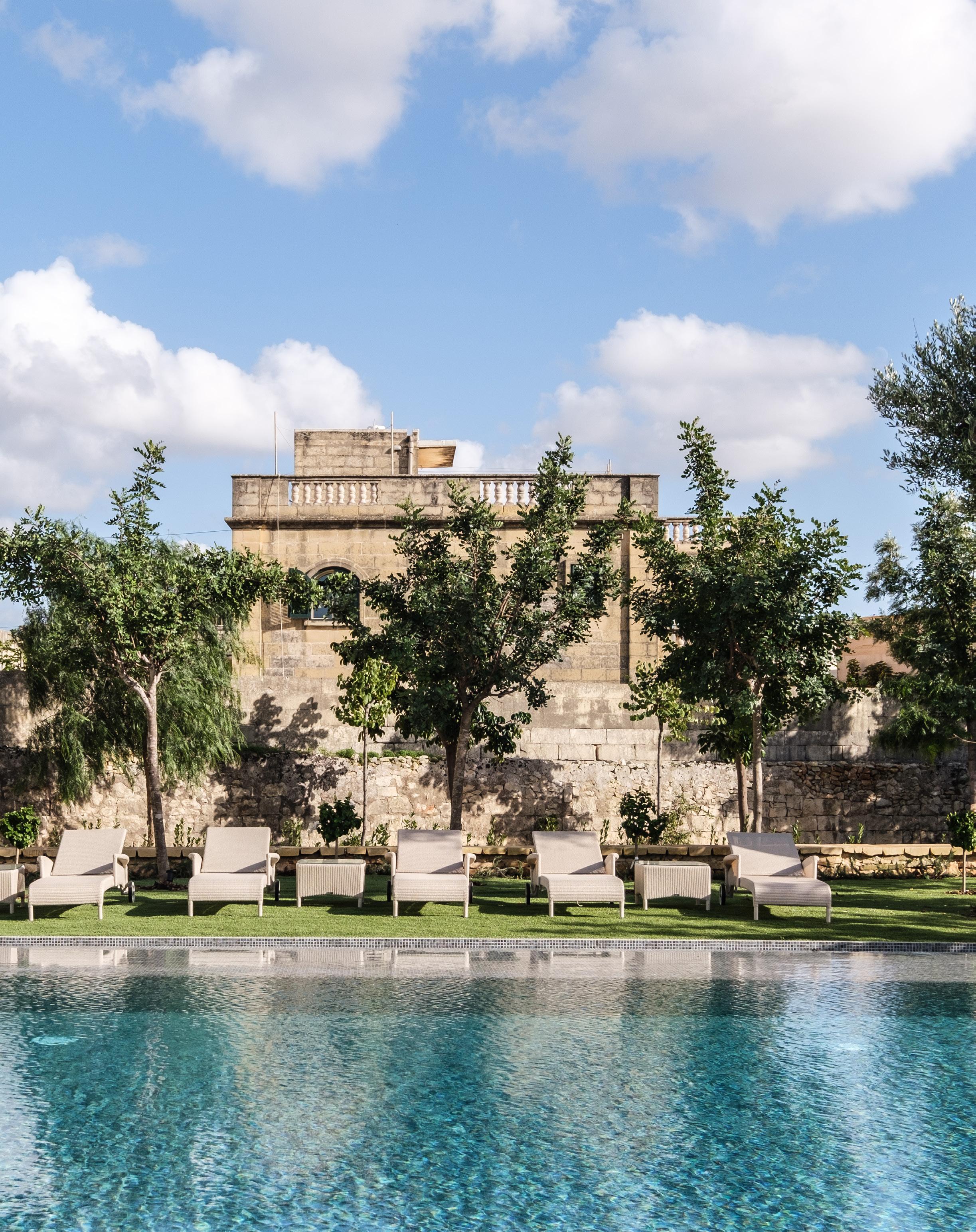 Villa Fiorentina is an impressive residential villa located in Malta. The building is an ode to high-end natural materials such as marble and travertine stone which complement our tactile woven furniture. Large windows submerge the rooms with light and create an open and inviting atmosphere. In the extensive garden, Safi sunloungers are placed alongside the large swimming pool which breathe timeless elegance.