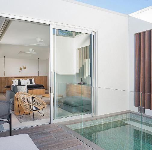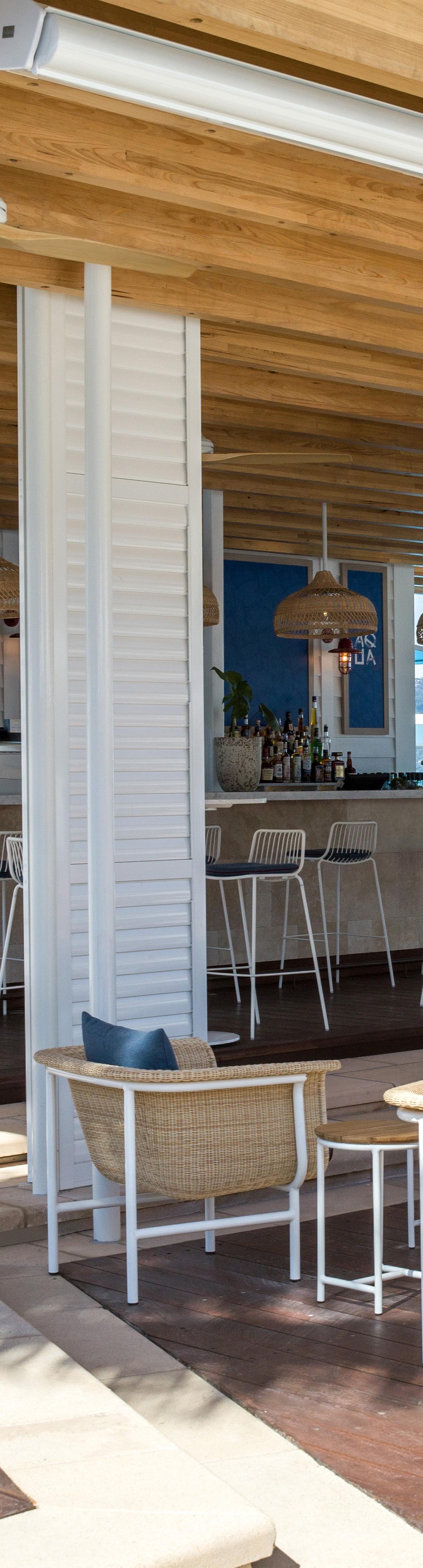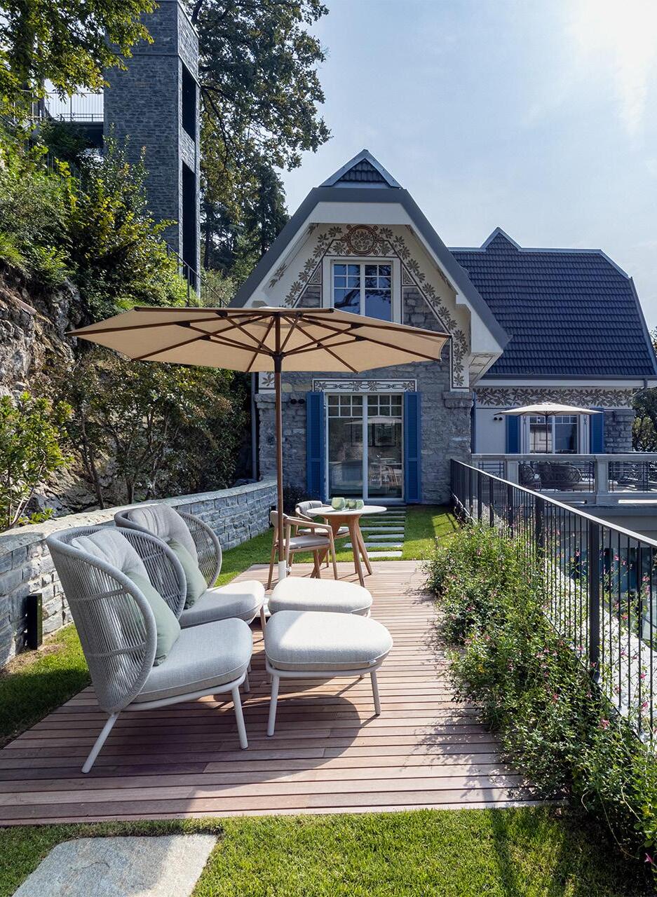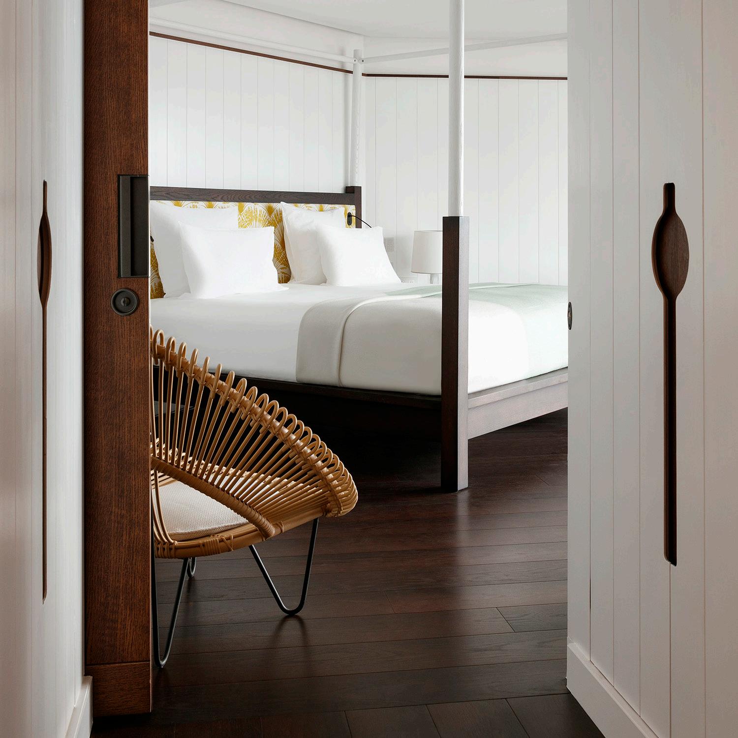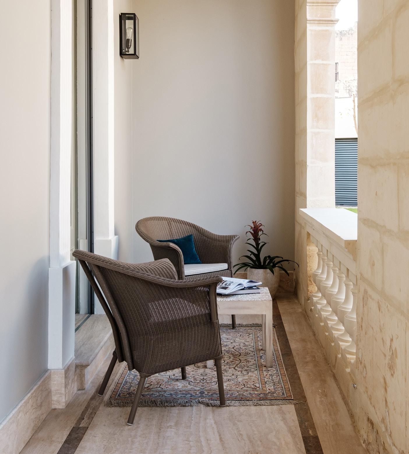 In the communal areas and balconies, the Roy Collection’s iconic chairs with rattan look create inviting spaces for guests to unwind and socialize.