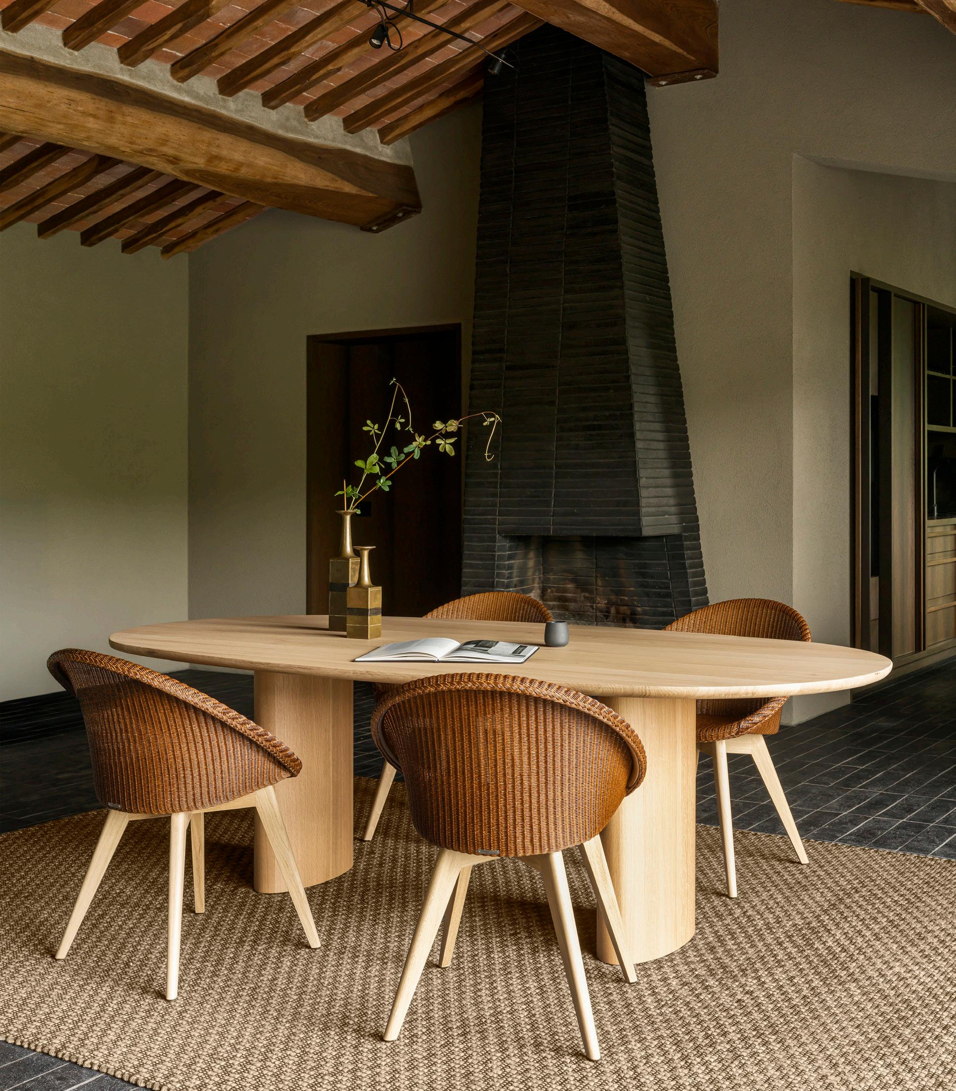 Norma’s seat is meticulously handwoven by skilled artisans around a solid oak frame, a process that requires an entire day of dedicated craftsmanship.