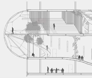 Within the building, the lower levels are open to public, the ground level is intended for public activities like community markets, while essential services like lobby and security room are in upper levels to ensure unobstructed service during flooding. Above is the residential area, each unit cluster formed share a small atrium and common area like laundry and kitchen. Between the two wings of the building is an expanded bridge that is also a common area able to house events. Besides the hard infrastructures, it is also deeply integrated with the community on the organizational level, besides communal services, there are also safe spaces in case of emergencies.