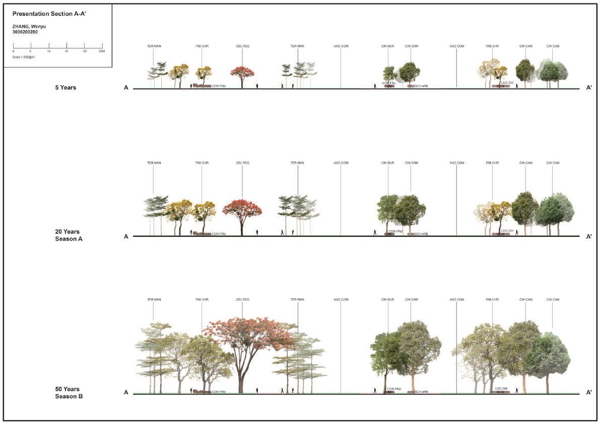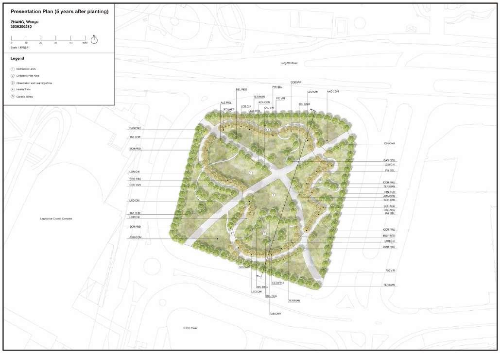 The site is located at the intersection of my university campus and a residential community, separated by Wushan Road. I found that the main problem is the lack of access to public facilities for external residents and the unmet requirements of students on campus for study and recreation. I divided the site into open, semi-open and private areas and replaced the original fencing with soft separation such as trees, lawns and shrubs. The project will allow students to study and socialise and meet the requirements of off-campus residents who require green space. The design will focus on the site's potential at the intersection to provide a new infrastructure for multiple stak eholders.