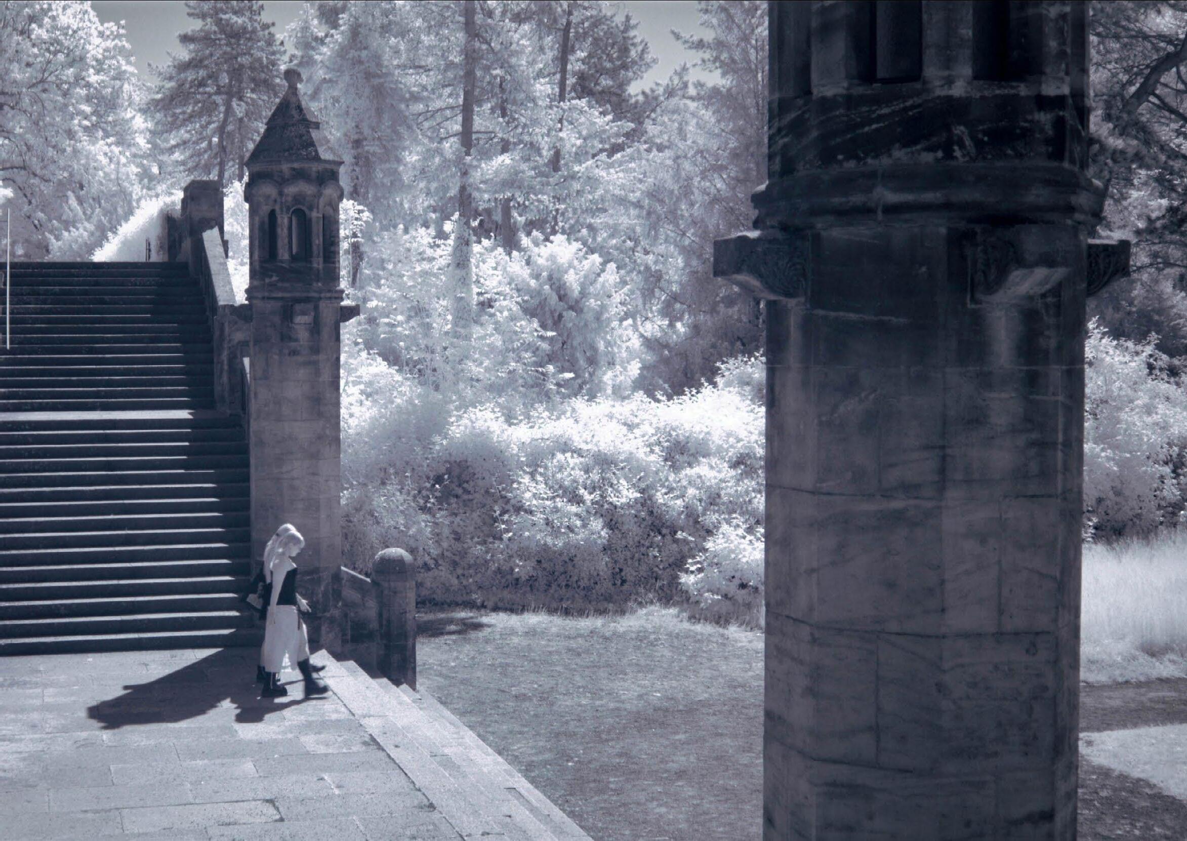 Pour renforcer l’étrangeté des personnages qui apparaissent à l’écran, certaines prises seront effectuées à l’aide d’une caméra infrarouge, donnant un aspect irréel aux sujets filmés. Ce procédé visuel me servira à montrer le statut intermédiaire des corps incarnant des images, à mi-chemin entre le surnaturel et le high-tech. Cette esthétique m’intéresse également pour sa capacité à transmettre une sensation d’ «œil-machine».