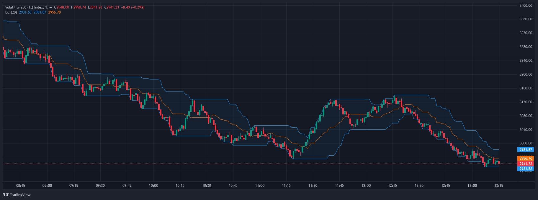 In the chart example, the Volatility 250 Index is shown on a daily chart. In just five days, it dropped over 30%, which is something you wouldn’t normally see on a major financial index. Previously, it had risen around 90% in 14 days.