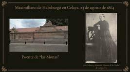 Y continuó: “Maximiliano llegaría a Celaya el 23 de agosto de 1864 acompañado de una gran comitiva imperial, la cual fue recibida desde las cercanías de la Villa de Apaseo. Una vez en Celaya, dirigió un discurso en el puente del Río de la Laja para después ser acompañado por autoridades civiles al interior de la ciudad”.