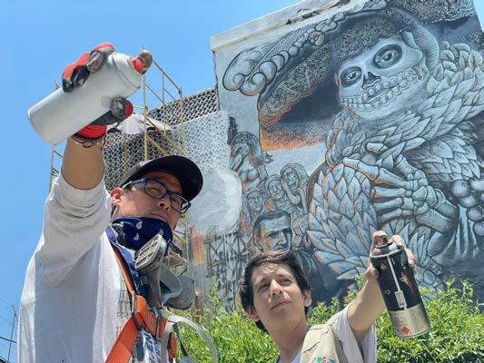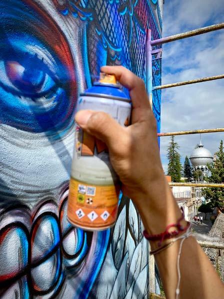 La etapa final será la colocación de la capa transparente de poliuretano para que el mural pueda tener un mayor tiempo de conservación.