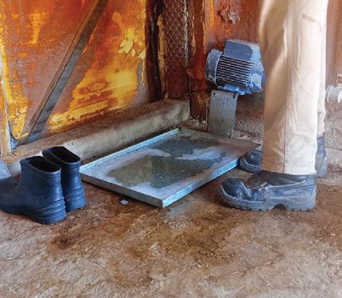 e) Colocación de pediluvios en los ingresos a cada galpón, para desactivar posibles contaminantes en el calzado de granjeros y supervisores.