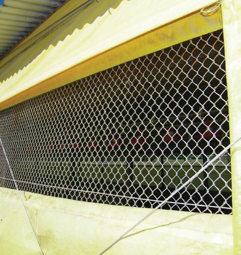 c) Mantenimiento en perfecto estado del tejido antipájaros en laterales y frentes de los galpones, para evitar el ingreso de aves silvestres.