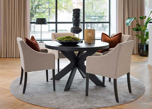 Mange kommer for å kjøpe spisebord til alle som kommer på julaften. Da må vi få kunden til å tenke over hva de har av plass til? Hvor mange sitter der til daglig? Det er kanskje ikke vits å kjøpe et bord som er 240 cm langt, hvis det er to personer som bruker det. Det er flere enn før som kjøper runde bord. Tendensene til store og runde bord handler om at spisebordet er husets nye, sosiale sone. Vi sitter her lenger enn før, og flytter oss ikke lenger bort til sofaen for å ta kaffen. Da ønsker vi et bord hvor alle kan ha øyekontakt, hvor det er god plass, og godt å sitte lenge. Polstrede sitteplasser er best. Vi selger mest tekstilstoler, gjerne polstrede. Men vi har også en “vippestol” i dansk design som er usedvanlig god å sitte i og veldig populær. Ellers er det svært forskjellig hva folk liker, og vi bærer