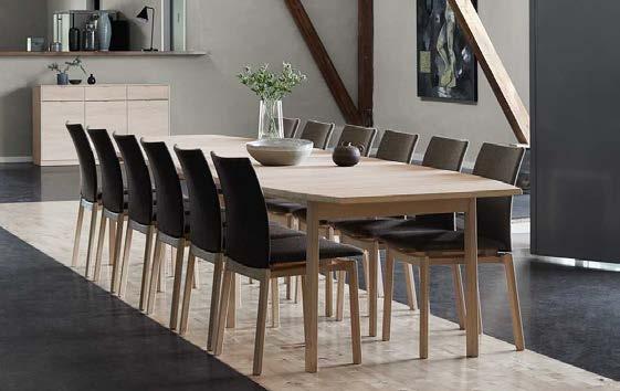 stolene våre rundt i hele butikken for å vise hva som passer til hva. De fleste som kjøper spisestue vil ha stoler og bord samtidig, men at de ikke nødvendigvis skal være fra samme serie.