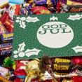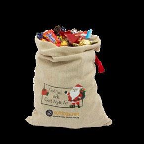 Våre nye julesekker får du med ditt helt eget trykk på fronten av sekkene. Sekkene lukkes med en sort snor og finnes i 3 ulike størrelser. Også her kan du velge mellom merkevaregodt eller pralinkuler som innhold.