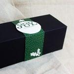 Flaske med Vanini olivenolje pakkes i en eske som designes helt etter ditt eget ønske.