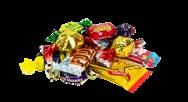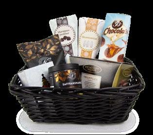 Kurver i 4 størrelser fylt med merkevaregodt eller pralinkuler. Kurvene pakkes inn i cellofan og påsettes sløyfe som standard. Kort med eget trykk og hilsen kan legges i kurven.