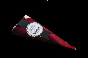 Brun papirpose med bastsløyfe og etikett påtrykket helt eget design festes i front. Posen leveres med merkevaregodt, pralinkuler eller Lübecker marsipan som innhold. Posen fås med eller uten vindu.