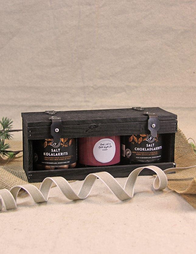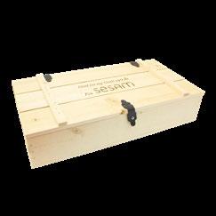 Rustikke treesker i 3 størrelser hvor logo brennes direkte inn i esken. Fylles med merkevaregodt eller pralinkuler. På 800g esken brennes logo på lokket mens foran på de andre eskene.