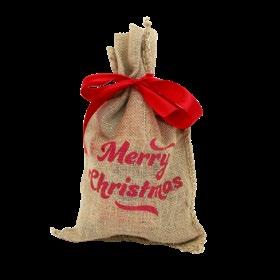 Julesekker med standard trykk Merry Christmas i front. Sekkene finnes i 2 størrelser og fylles med julens favoritter.