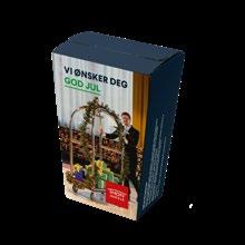 Det klassiske kremmerhuset hvor du får din egen logo og julehilsen trykket både på selve kremmerhuset og etiketten. 4 ulike innhold å velge mellom.