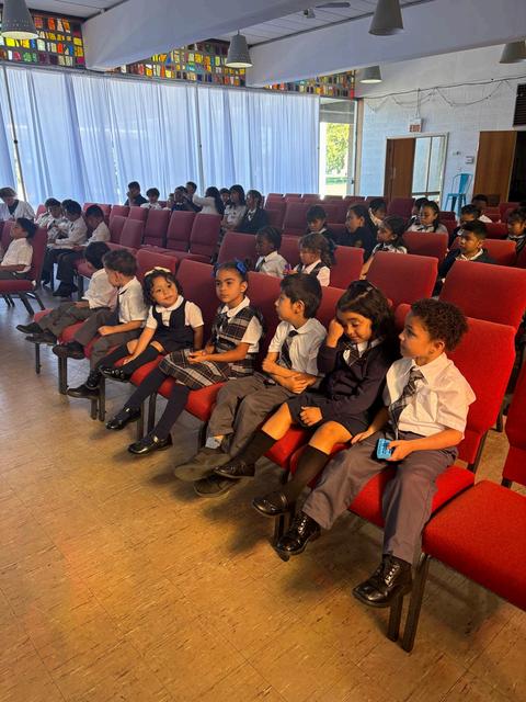 (Los estudiantes usan Chaqueta azul marino con el logo de la escuela bordado en el pecho izquierdo sobre el corazón.Las niñas usan la falda a cuadros con medias azul marino y zapatos negros. Los niños usan pantalones grises con medias azul marino o negras, cinturón negro y zapatos de vestir negros.)