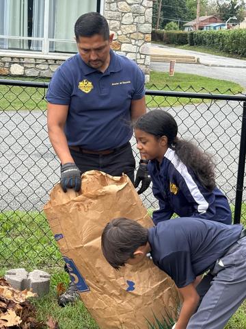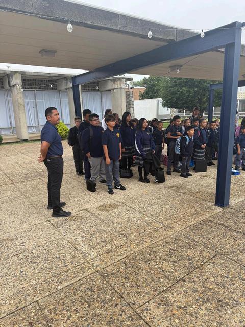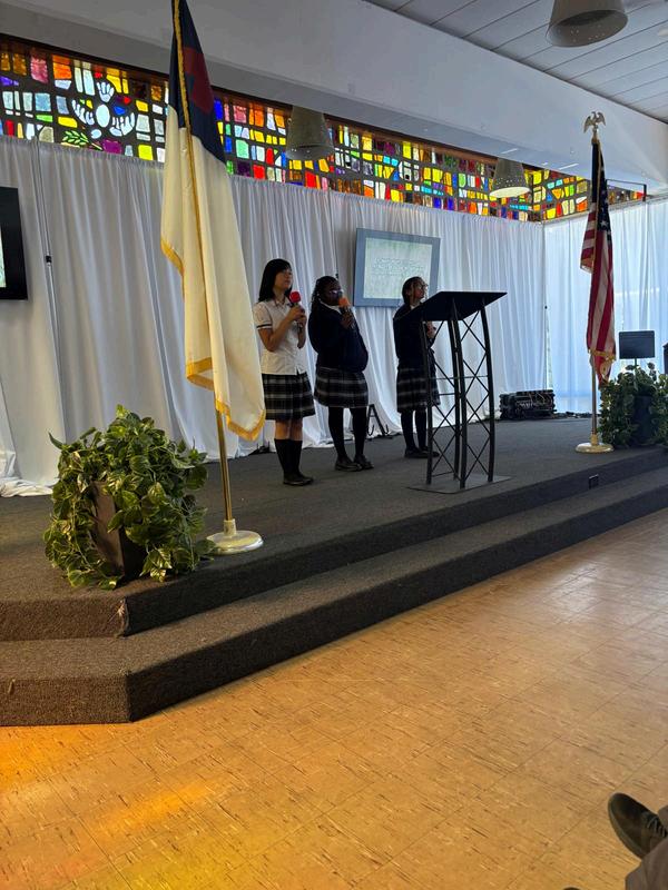 Students wear the navy blazer or Fleece jacket with the school logo embroidered on the left chest over the heart. Girls wear the plaid skirt with navy blue or black socks and black shoes.Boys wear gray pants with navy blue socks, black belt, and black dress shoes.
