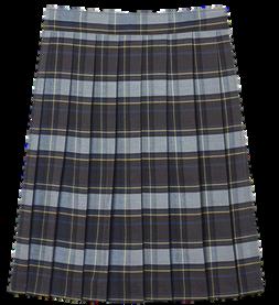 Students wear the navy blue polo with the school logo embroidered on the left chest over the heart. Boys wear gray with navy blue or black socks, black belt, and black dress Girls wear the plaid skirt with navy blue socks and black