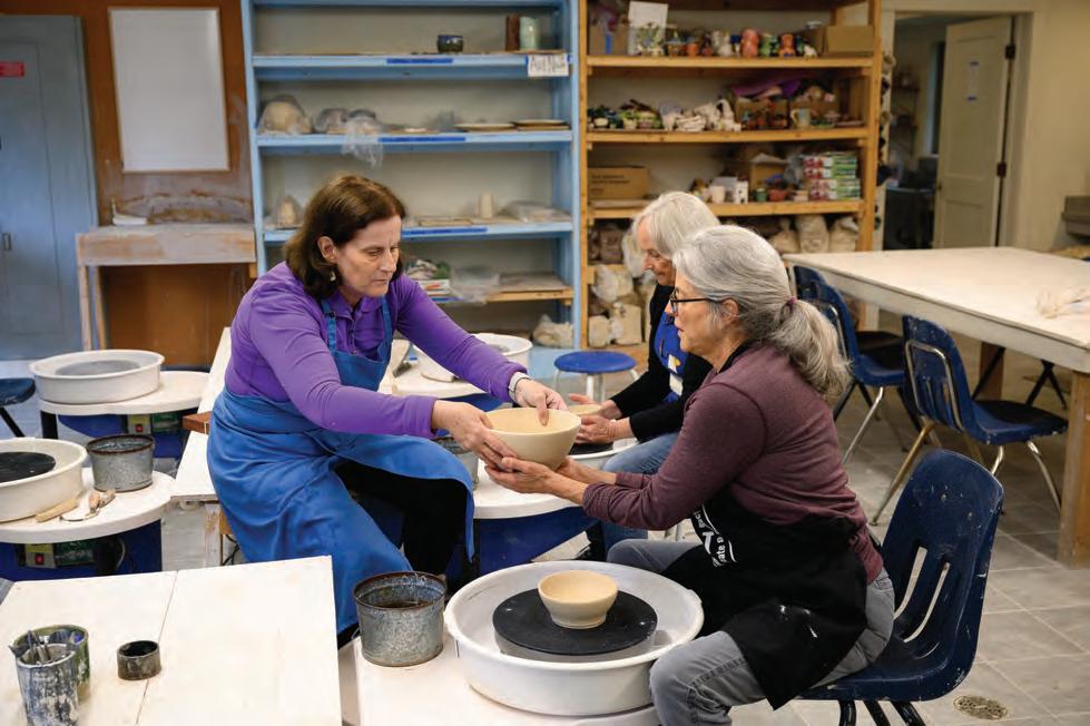 and bowls and handled items in the beginning classes. In this one, we’re going bigger, or taller, or wider, or whatever they want, or they can add texture to their piece,” she said. “So this class can go in any direction; I follow everybody else’s lead.”
