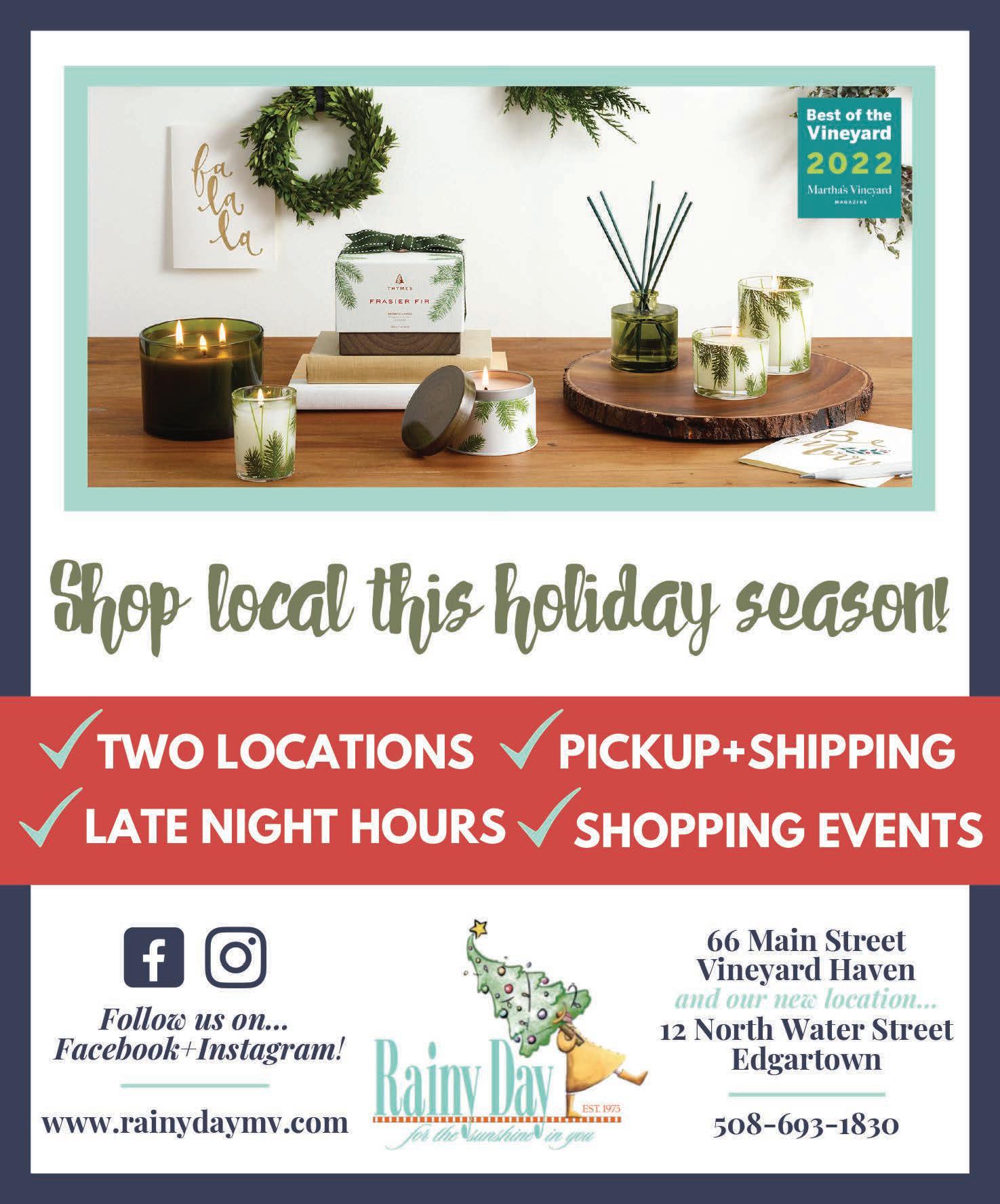 In addition to visiting retail stores in all six of the Island towns, you'll also want to hunt for one-of-a-kind artisan and Island-made gifts at the wide range of holiday pop-ups and fairs beginning this week and running through Christmas. Turn to page 25 for a complete list of fairs during the holidays.