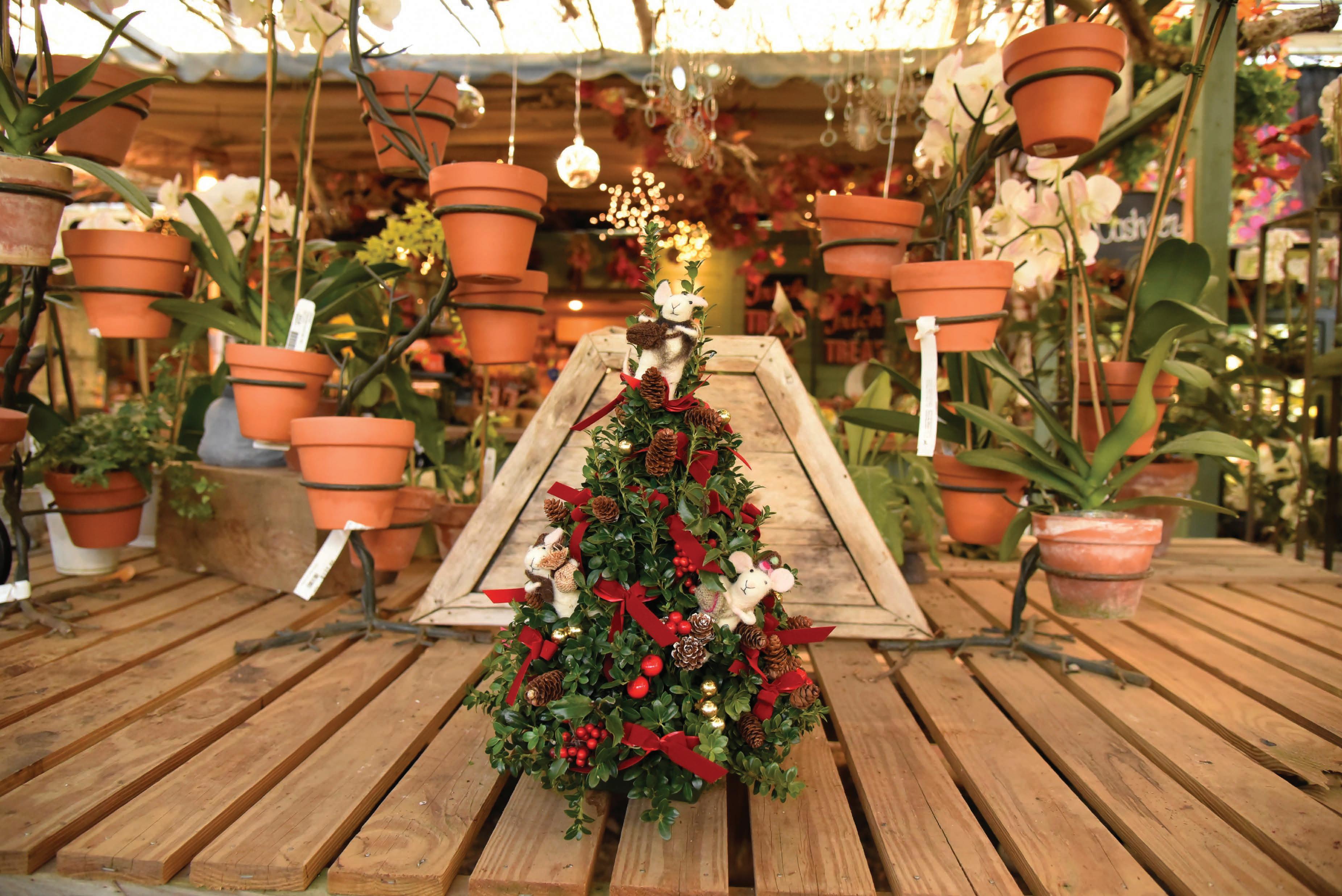 “We have a gazillion ribbons,” she says, having not yet determined whether buffalo plaid or classic velvet will be the big thing this year. Along with a wealth of evergreens and ribbons, Donaroma’s has secured a variety of “doodads and bobbles” to add flair to each wreath. Among the most unique are dried arti chokes, oranges and pomegranates, each one “lovingly impaled,” as Mariko says, on a wooden stick.