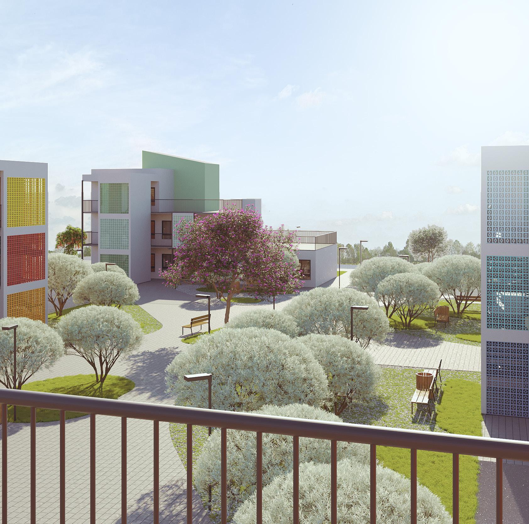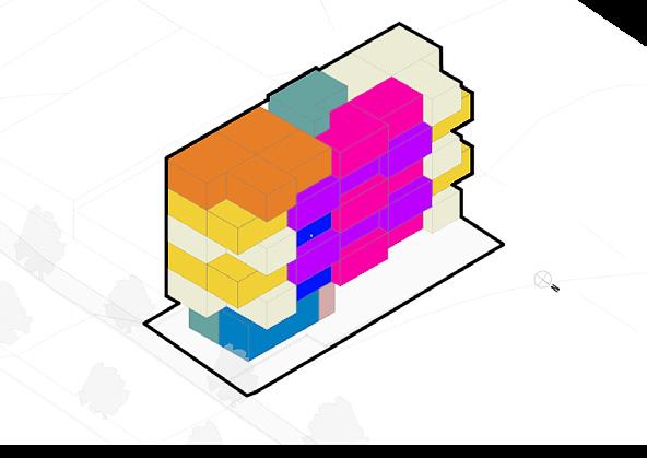 Como o conceito norteador são pássaros, buscamos explorar a verticalidade dos blocos, criando formas verticais escalonadas. As formas escalonadas tem o objetivo de criar terraços sobre as coberturas, que podem ser usados pelos moradores. Além disso, cada bloco tem um escalonamento diferente, o que dá identidade para eles, principalmente quando somada ás cores únicas, fortalecendo a ligação emocional de cada morador. A altura de cada bloco foi definida de acordo com a insolação e vistas que queremos prestigiar.