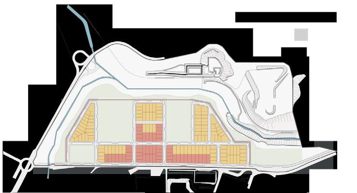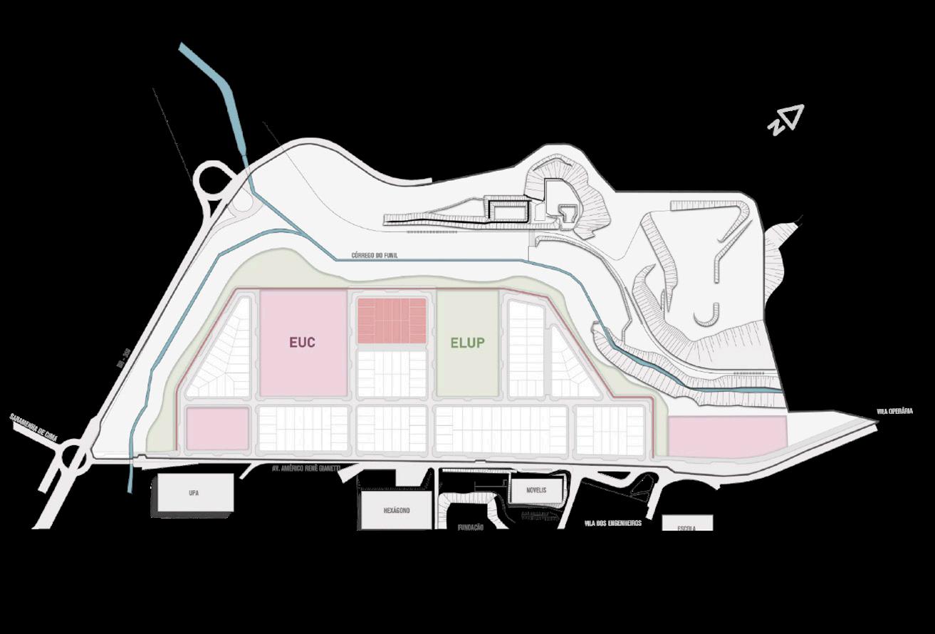 INSTITUCIONAL EUC CONEXÕES FUNCIONAIS VISADAS INTERESSANTES ELUP PONTENCIAL RESIDENCIAL FLUXOS E HIERARQUIAS CONFIGURAÇÃO DAS VIAS CONEXÕES E VISADAS SOCIABILIDADE E TROCAS PONTENCIAL COMERCIAL PARÂMETROS URBANÍSTICOS ZONEAMENTO COEFICIENTE DE APROVEITAMENTO TAXA DE OCUPAÇÃO DE PERMEABILIDADE LOTE MÍNIMO TESTADA MÍNIMA QTUH AFASTAMENTO FRONTAL AFASTAMENTO LATERAL ZEIS (Sobrepondo ZAR - 2) ZAR 2 + 50% = 1,5 ZAR 2 + 25% = 62,5% ZAR 2 - 25% = 22,5% 125 m² 5 m 25 m²/ unidade 3 m 1,5 m PARÂMETROS URBANÍSTICOS INSTITUCIONAL EUC CONEXÕES FUNCIONAIS VISADAS INTERESSANTES ELUP EUC ELUP AV. AMÉRICO RENÊ GIANETTI RUA E e RUA C, G e K RODOVIA BR-356 VIA COLETORA VIAS LOCAIS VIAS COMPARTILHADAS CICLOVIA PONTENCIAL RESIDENCIAL RUA B, F, J e L LOTEAMENTO Diagrama de diagnóstico do terreno de estudo Produzido por: Vinícius Pontes