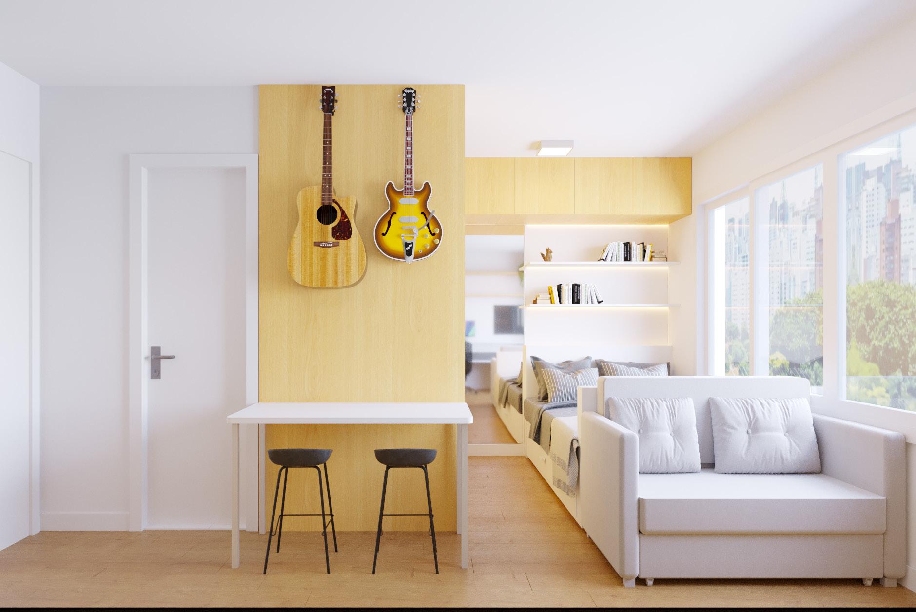 Projeto Apartamento JP Colaboração no estudo preliminar e produção das imagens