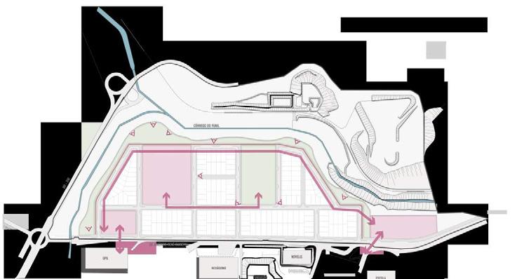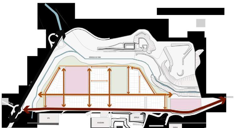 Era importante que existisse um fluxo horizontal, tanto para acesso, quanto visual, já que esse eixo liga a EUC e ELUP que se encontram ao lado