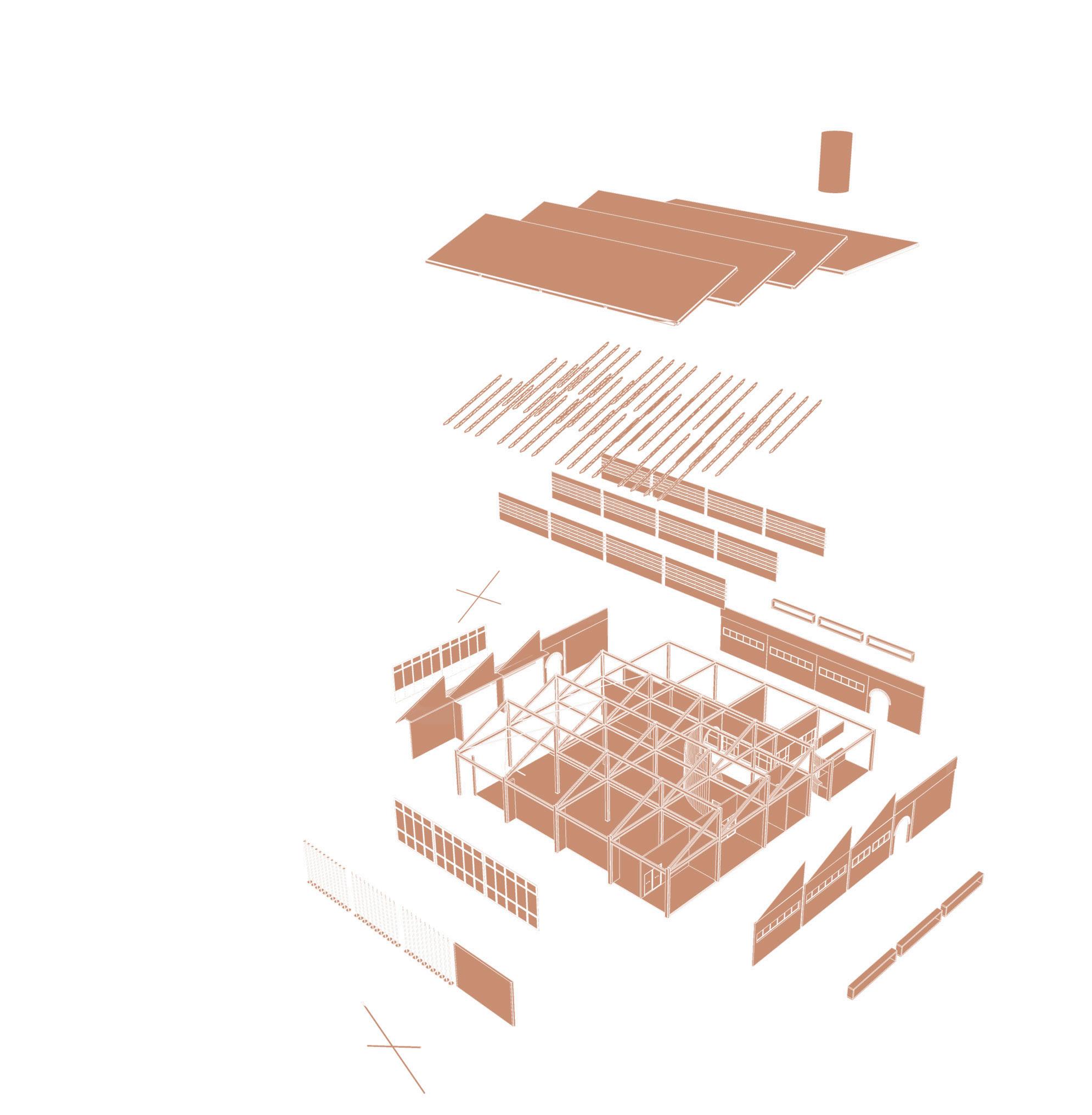 Os pilares e vigas do projeto são de madeira lamelada colada (MLC) dimensionados de modo a proporcionar estabilidade estrutural e garantir a segurança em caso de incêndio.As lajes dos pavimentos superiores ao térreo são compostas por um sistema misto. A composição se dá por peças de madeira lamelada cruzada (CLT) de 5 camadas, protegidas com uma membrana barreira de vapor, cobertas com uma capa de concreto armado e revestidas conforme a utilização do espaço.